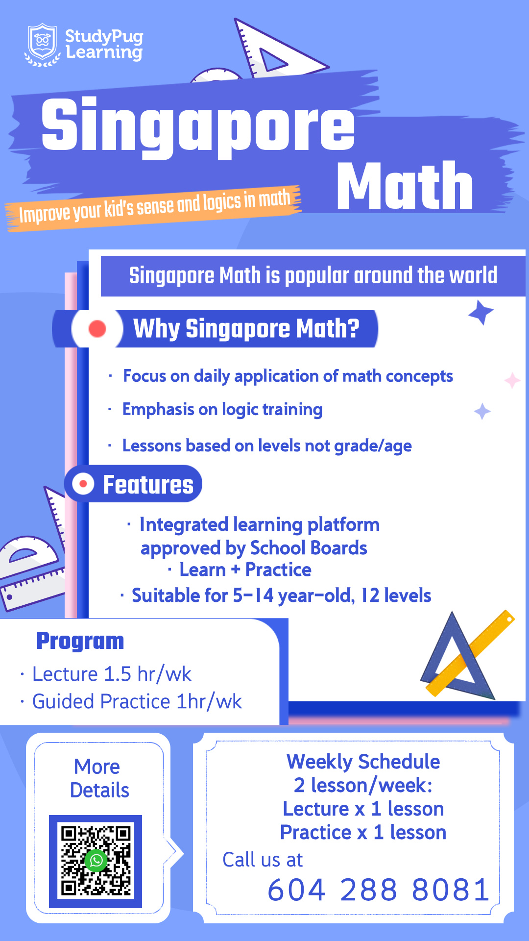 StudyPug Learning Advantage:Our curriculum was designed carefully after years of experience with the Ministry of Education’s approval. Students will learn through intensive lectures, homework, quizzes, and in-class practice.