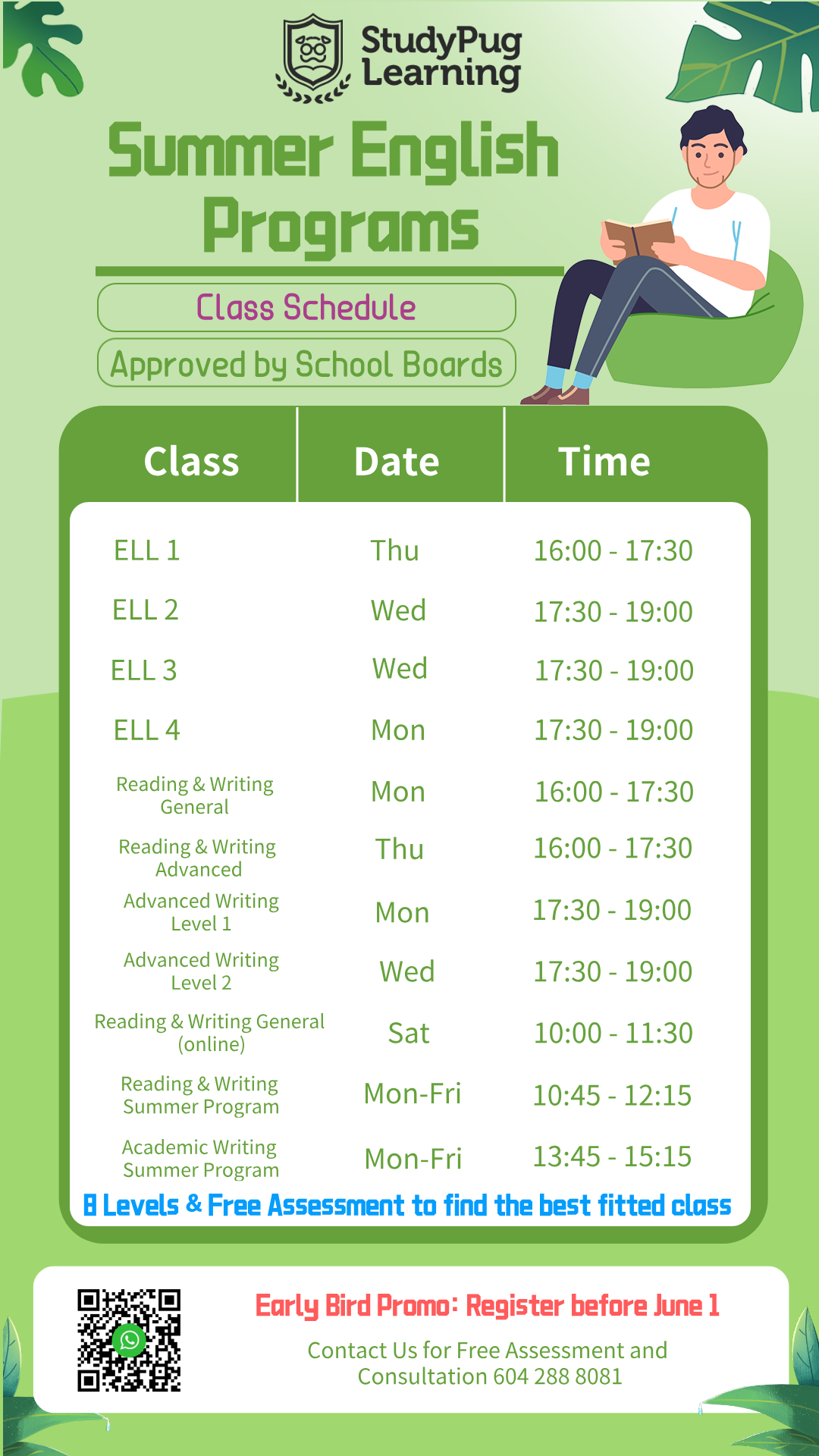 StudyPug Advantage:Designed based on years of experience running summer learning camps and curriculum planning. Fully addresses students' needs for improving English proficiency and advancing in math. Utilizes ministry-of-education-approved learning systems for efficient study and thorough practice.